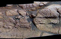 More convincing were closer observations with two instruments on the rover arm, the Moessbauer and alpha particle X-ray spectrometers, as well as the mast-mounted miniature thermal emission spectrometer. Those instruments found a pattern of salt deposition found in the slow evaporation of water.