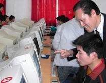 Wang Shijie, headmaster of Shijie Computer School taught students at Shucheng Vocational School operating computer on March 14. To make the village children's "computer dream" come true, the Shijie Computer School donated 100 computers to Shucheng and Changfeng counties. It will also provide computer trainings for 1,000 teachers in rural areas.