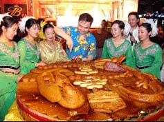 The giant cake mixed with variety of fillings, such as flour, eggs and beef is enough to feed 400 people.