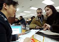 Iran's Sara Hesabian (right) applies for an extension to her visa at the Division of Entry-Exit Administration of the Beijing Municipal Security Bureau.