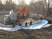The project, which has already been suspended after being slammed by experts and environmental authorities, aims to cover the park's lake bed with impermeable membrane so that water will not seep away into the ground.