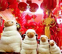 Businesses are also cashing in on the holiday mood. A mobile phone company offered a "happiness" package to buyers of its products, while a company making oxygen-generating air-conditioners entices people to "take oxygen to your home in the Year of Sheep" in its promotions.