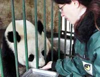 Yang Yang, a female, and Long Hui, a male, both two and a half years old, from the Wolong Nature Reserve in the southwestern province of Sichuan, are on loan for 10 years.