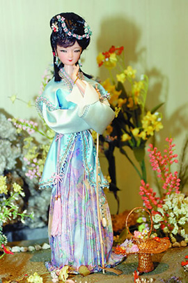 The highlights of the exhibition are the "Dream of Red Mansions" dolls. Also exhibited are Jin's creations after figures in many Chinese folk stories and legends, Jin's versions of Barbie dolls and even Jack and Rose from the hit movie, "Titanic".