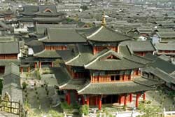Besides, to minimize the impact of modern business activities on the ancient culture of Lijiang, shops in the old city proper have been rearranged; those with obvious modern business characteristics have been moved out of the old city area. Cement block multi-story buildings that are out of tune with the local architectures have been demolished.