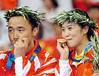 Podium du double mixte du tournoi de badminton des jeux Olympiques d'Athènes: