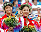 Podium du double dames de tennis des Jeux Olympiques d'Athènes, dimanche 23 ao?t: