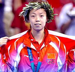 Zhang Yining qui s'est adjugée dimanche après-midi la médaille d'or lors de la finale du tennis de table simple dames à Athènes a permis à la Chine d'avoir possédé sa 100ème médaille d'or des Jeux Olympiques d'été.