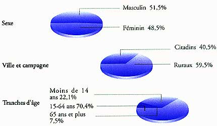 La structure de la population chinoise est proportionnellement présentée par le tableau ci-dessous: