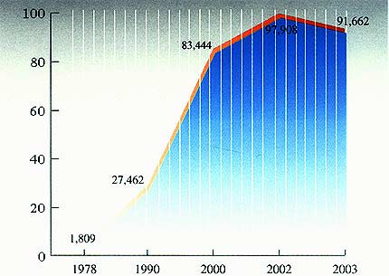 En 2003, à cause du SRAS (Syndrome respiratoire aigu sévère) dans la première moitié de l'année, les principales normes économiques du tourisme chinois ont enregistré, pour la première fois depuis les années 90 du XXe siècle, des chiffres négatifs. A partir du premier mai 2003, les départements concernés comme le ministère des Finances, l'Administration nationale des affaires fiscales, etc. ont pris une série de mesures d'aide comme la réduction et l'exemption des imp?ts, le crédit d'escompte, etc. à l'égard du secteur touristique. Lorsque le SRAS a été enrayé, le marché touristique intérieur fut rapidement réanimé dans le troisième trimestre. Et les déplacements des touristes étrangers en Chine ont recommencé à prendre leur essor. A la fin de septembre, le nombre de touristes étrangers en Chine a augmenté de 2,17% par rapport à la même période de l'année précédente, redressant ainsi une situation négative durant six mois de suite depuis mars. Au mois d'octobre, le nombre de touristes étrangers en Chine a dépassé celui de la même période de l'année précédente. Les recettes du tourisme chinois ont commencé à enregistrer une croissance stable.