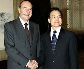 Wen a dit que la Chine et la France ont des positions identiques ou similaires sur de nombreux problèmes importants, indiquant que la Déclaration sur le Dialogue entre les Cultures et les Civilisations, proposée par la Chine et la France, a été adoptée au 5ème sommet Asie-Europe (ASEM) qui vient de se cl?turer, a rencontré des échos favorables de la part des dirigeants de différents pays assistant au sommet.