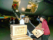 Arrivée du troisième lot d'aides humanitaires chinoises à bord de l'avion spécial du premier ministre chinois Wen Jiabao le 5 janvier en Indonésie