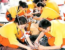 Les docteurs chinois donnent des soins le 6 janvier aux blessés des tsunamis à Banda Aceh, Indonésie.