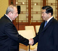 Le vice-président chinois Zeng Qinghong a rencontré jeudi à Beijing le vice-président du gouvernement intérimaire de l'Irak, Rowsch Nuri Shaways, au Grand Palais du Peuple chinois. Lors de sa rencontre, Zeng a exprimé la pronfonde préoccupation de la Chine pour les 8 ressortissants chinois enlevés en Irak, souhaitant que les otages soient libérés au plus t?t. Zeng a déclaré que les peule chinois et irakien jouissaient d'une tradition d'amitié depuis lontemps. Selon lui, le gouvernement chinois attache toujours de l'importance à la sauvegarde des intérêts fondamentaux du peuple irakien dans le traitement du problème irakien. La Chine est prête à conjuguer ses efforts avec l'Irak pour développer les relations sino-irakiennes dans l'avenir. Shaways a indiqué de son c?té que la partie irakienne ne voulait pas voir cette prise d'otages, disant que son pays était en train de faire ses efforts pour réaliser le plus t?t possible la libération des Chinois pris en otage.