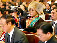Un membre de la province du Qinghai, nord-ouest de la Chine, filme la session de la CCPPC