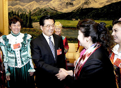 Hu Jintao avec la délégation de la Région autonome du Xinjiang
