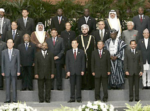 Le président chinois Hu Jintao a délivré un discours intitulé ? Du passé glorieux à un futur lumineux : établir un nouveau type de parteriat stratégique entre l'Asie et l'Afrique ?.