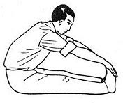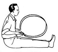 Tourner les roues avec les mains (Les roues gauche et droite) Dans la position assise, garder le corps droit et les jambes tendues; d?placer les mains en haut pour dessiner un arc ? partir des c?tes. R?p?ter plusieurs fois ce mouvement circulaire, puis ce dans le sens contraire plusieurs fois (Fig. 6). Cet exercice est tr?s utile aux muscles extenseurs des lombes et des jambes et ? la r?gulation de la circulation du M?ridien de la Vessie Taiyang du pied, le plus long m?ridien du corps humain. Il convient particuli?rement aux personnes d'?ge moyen et aux personnes ?g?es.