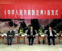Dans son discours prononc? ? la c?r?monie de la parution du ? Code de la R?publique populaire de Chine ? tenue le 9 octobre ? Beijing, le pr?sident du Comit? permanent de l'Assembl?e populaire nationale de Chine Li Peng a d?clar? que la Chine avait ?tabli pour l'essentiel un syst?me juridique socialiste ? la chinoise bas? sur la Constitution et ayant comme noyaux des lois fondamentales civile, p?nale, ?conomique, administrative et de proc?s.