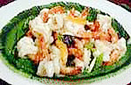 30 crevettes de mer, 75 g de jambon, 15 g de champignon parfumé qui gonfle dans l'eau, 50 g de pousse de bambou, 10 g de poireau.