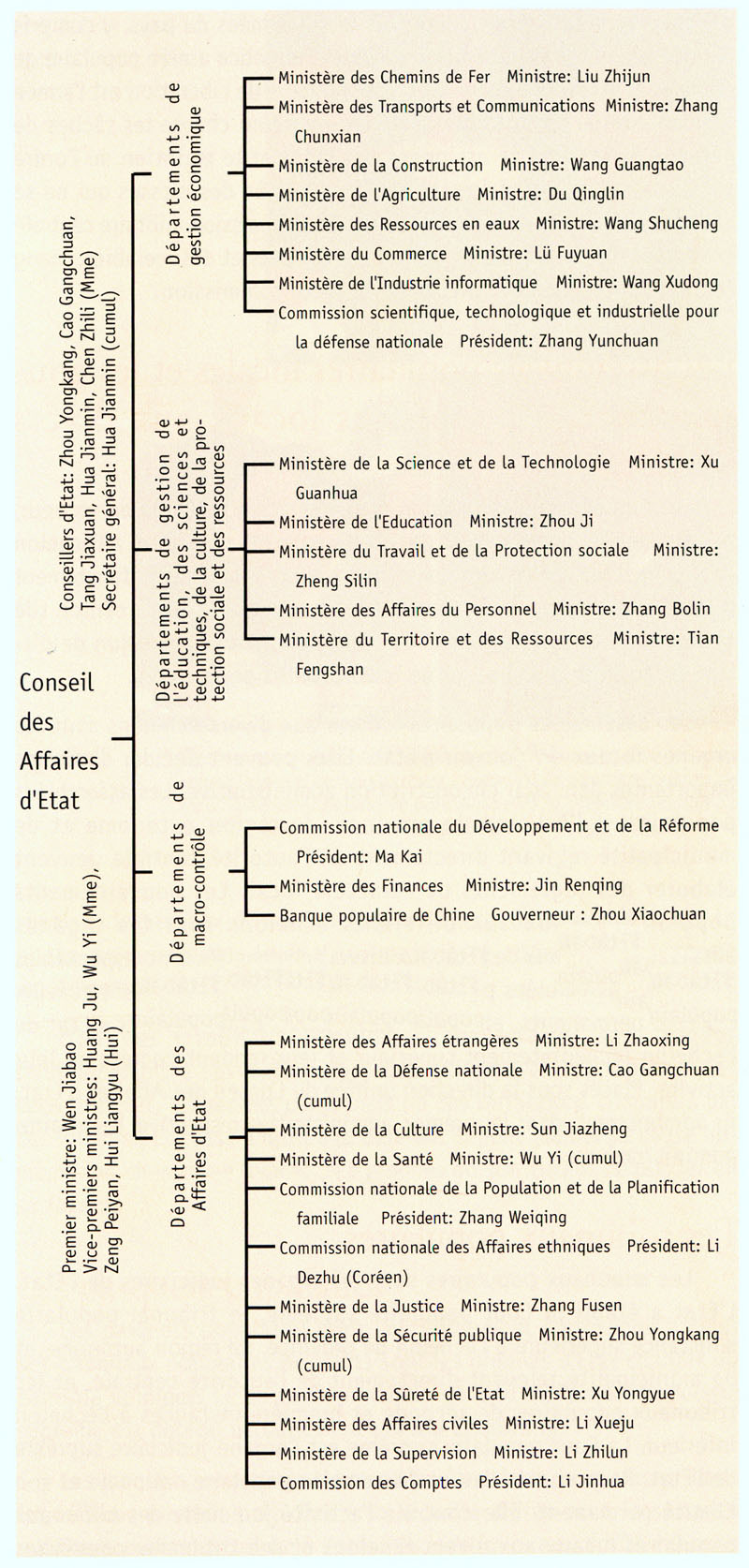 | Les parquets populaires dont l'établissement correspond à celui des tribunaux populaires existants sont les organes d'Etat chargés du contr?le juridique. Le poste de procureur général du Parquet populaire suprême est détenu actuellement par Jia Chunwang.