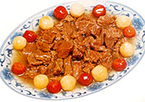 2. Einen Topf mit Wasser füllen, das ?l hineingie?en und das Rindfleisch, den Ingwer, Porree und das Blütenpfefferpulver zufügen. Der Topf auf gro?e Flamme stellen, einmal aufkochen lassen und sofort auf schwache Hitze zurückschalten. Alles schmoren lassen, bis das Rindfleisch fast gar ist. Dann die Kartoffel- und M?hrenstücke, das Salz und die Sojaso?e hineingeben und weiterkochen lassen, bis das Rindfleisch ganz gar und weich ist. Zum Schluss das Glutamat zugeben und mit Petersilie bestreuen.