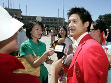 Au?erdem brachte der Beijinger Bürgermeister und Vize-Vorsitzenden des Komitees zur Vorbereitung der Olympischen Sommerspiele 2008, Wang Qishan, die Olympische Fahne von Athen mit nach Beijing.