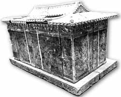 Der Grabeingang und Steinsarkophag mit zwei v?llig intakten Skeletten und in Form einer traditionellen Kammer mit einem Giebeldach konnten die Jahrhunderte nahezu unbeschadet überstehen.