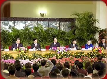 Die erste Tagung des 10. Nationalen Volkskongresses w?hlte die neuen Mitglieder des Staatsrats mit Wen Jiabao als Ministerpr?sident und Huang Ju, Wu Yi, Zeng Peiyan und Hui Liangyu als stellvertretende Ministerpr?sidenten.