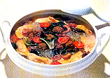 1. Die Glasnudeln 30 Minuten in warmem Wasser einweichen und in 15 cm lange St?cke schneiden. Die Pilze und Krabben in anderen Sch?sseln ebenfalls 30 Minuten in warmem Wasser einweichen. Die Krabben fein hacken, von den Pilzen die z?hen Stiele entfernen und die Pilzh?te halbieren. Die Seegurken und die Bambussch?sslinge in Scheiben schneiden.