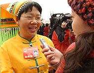 Eine weibliche Abgeordnete der nationalen Minderheiten beim Interview