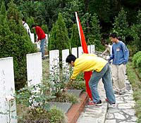 Am Qingming-Fest jedes Jahres str?men viele Leute in die verschiedenen Friedh?fe, um die Gr?ber ihrer Vorfahren zu besuchen. Man fegt zuerst die Gr?ber, legt dann Nahrungsmittel, frische Blumen und Gegenst?nde, die den Verstorbenen zu ihren Lebzeiten gefielen, vor die Gr?ber, zündet Weihrauchst?bchen an, verbrennt Totengeld und verbeugt sich vor dem Grabmal.