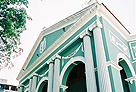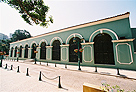 崗頂劇院の建物はもともとペドロ五世劇院(Teatro Dom Pedro V)といわれ、また馬蛟劇院或いは崗頂波樓とも呼ばれ、1860年に澳門在住のポルトガル人が資金を調(diào)達して劇院のメーンの部分を作り、これによってポルトガル國王のペドロ五世を記念することになった。建築物のデザインは新古典主義のギリシャ?ルネッサンス期の風格を採用し、平面はタテ方向の配置を取り入れ、全體の塗料は緑色であり、黒い緑色のドアと窓および赤色の屋根によって引き立て、黃色を主なトーンとする周辺の環(huán)境と調(diào)和がとれており、個性も際立たせている。 |