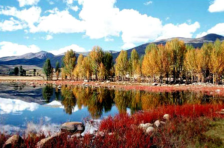 ダオチョン(稲城)は四川省南部の縁に位置する。春夏秋冬、それぞれに獨特の美しさを見せてくれる。なかでも秋の色彩に包み込まれたウチュ(俄初)山が最も秀麗だ?!弗Ε隶濉工膝隶佶氓日Zで「輝く山」のこと。海抜は5140メートル、峻嶺は雲(yún)の虹に端坐する容貌の美しい仙人を彷彿させる。峽谷から登り始めていくと、幾重にもなった灌木の森林が眼に飛び込んでくる。艶やかな紅色、明るく美しい黃色、柔らかく溫かな緑色と、実に色彩豊かで麗しい。訪れた人びとは秋の風景に酔いしれることだろう。