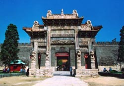 岱廟は、南北405m,東西は237mあり総面積は68.265坪に達(dá)するという。多年にわたりよく修復(fù)されており、全部の建物は左右対稱に造られ、入り亂れた中に規(guī)律性があり、気勢(shì)が雄大であり、かつ華麗である。この中の天キョウ(貝兄)殿は故宮の太和殿と曲阜の孔廟大成殿にならび、中國(guó)古代の3大宮殿式建物と呼ばれている程大規(guī)模なのだ。これらの、恭しく厳かな、華麗な建物ばかりでなく、歴代朝廷のご光臨、政府高官や知識(shí)人の朝拝等により多くの貴重な文物を見ることが出來る。優(yōu)美な詩(shī)章、素樸な石碑、風(fēng)雪を得た古木等は岱廟の悠久な歴史を刻み込んでいる。漢柏樹(5株のみ現(xiàn)存)は漢の武皇帝が泰山を奉ったとき植えられたと言うから、樹齢2000年を超える勘定になるが、枝葉が生い茂り活気に溢れている。