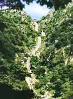 中國(guó)5名岳とは、泰山を筆頭に華山、衡山、蒿山、恒山を指し示すらしい。それぞれに特徴もあり素晴らしいもののようだが、中國(guó)ではなんでも、番號(hào)を付けて誇張するような習(xí)慣も見受けれるようだが。でも泰山は、その最高峰?玉皇峰がわずか1545mと比較的低いにも関わらず、麓の街、泰安より6666段を越す、階段でほぼ直線的につながっており、數(shù)時(shí)間(健腳家で5ー6時(shí)間)でほぼ登り切れるという。中天門(700m)までは、小型バスも通じており、ここから南天門までケーブルも出來ている。ほんの7.5分で南天門まで上れるわけだ。南天門付近の階段は急峻を極め65度に達(dá)し、先行者の足先が自分の鼻先に位置するという。登るのはともかく、下りは足がすくみ、大変勇気が居るようだ。南天門から山頂まで500段ぐらいの階段もあるが、途中に道教の寺院もありぶらぶら見學(xué)がてら歩けば、快適な散歩道と言うところだ。