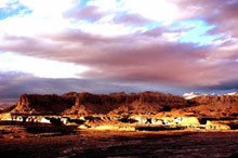 西蔵(チベット)阿里地區(qū)札達(dá)県にある象泉河の谷の両岸には、世界でも類を見ない獨(dú)特の侵食地形「土林」が広がる。太古の昔、一帯は湖の底にあった。當(dāng)時(shí)の堆積層は、その後のヒマラヤ造山運(yùn)動(dòng)により隆起したため、水位の低下や、気候の変化、河川などの浸食作用で、柱狀の侵食地形ができ上がった。垂直に削られた山肌には柱狀の巖が殘り、そびえ立