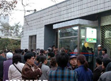 寫真:9日午前8時ごろ、北京市石景山區(qū)供電局の前には長蛇の列ができた。最高で約500人待ちとなり、列の長さは200メートルを超えた。
