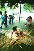 る。白洋淀のむしろやよしずは、白くて緻密に編まれているので、人気の土産品だ。