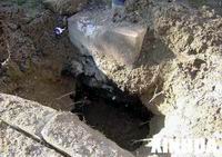 寫(xiě)真:砲撃によりホテル玄関付近にできた深さ約1.5メートルの穴