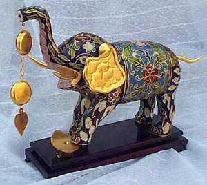 七寶焼は琺瑯びきとも言い、元朝(1206-1279)の都で生まれた蕓術(shù)品で、明朝(1368-1644)の景泰の頃(1450-1456)に盛んに作られるようになった。うわぐすりの色が主に藍(lán)色(ピーコック青とサファイア?ブルー)を主とするため、景泰藍(lán)(七寶焼)と稱されてきた。