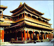 雍和宮は清代康煕三十三年(1694)に建立された。北京地區(qū)で規(guī)模最大、最も完全な形で殘存するラマ教(チベット仏教)黃教の寺院。廟は南に向かって立ち、南から北へと牌樓院、昭泰門、天王殿、雍和宮殿、永佑殿、法輪殿、萬(wàn)福閣などが並んでいる。