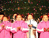 大連市では12月31日夜、少年?児童の代表がろうそくを手に祈りの歌「祈禱」を歌った。同市中山區(qū)政府と大連日報(bào)社は同日、公益活動(dòng)「新たな希望への出航?祝福2005」を開催し、1萬人以上の市民が參加した。
