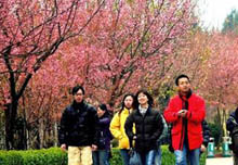 寫真:昆明市雲(yún)南民族村で満開のサクラを楽しむ人々