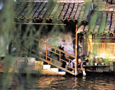 この長江以南の水郷のいま一つの特色は手軽な料理である。食が長江以南にあるといわれてきたが、ここでは長江以南地域でよく知られている百年の歴史のある名物料理の三珍醤鶏(醤油で煮込んだ鶏肉)、烏鎮(zhèn)のヒツジ肉、および著名な地方名物料理の荷葉粉蒸肉(ハスの葉と豚肉のひき肉の合わせ蒸し)、定勝糕(お菓子)などを味わうことができる。みなさんがグルメ通であるならば、是非とも機(jī)會(huì)を逃さないように。古めかしい旅館やレストラン以外に、茶店も烏鎮(zhèn)の水郷の特色を示す主な存在であり、本場のキクの花のお茶は甘くてあっさりしているばかりでなく、養(yǎng)顔という美容の効もある。食事の後、茶樓(樓閣式の茶店)で一服すれば、実に楽しい。