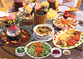 タイ族の人たちが開(kāi)設(shè)している料理店では、ほとんどのメニューは花を材料とした料理であり、さまざまな花を材料とする料理にはまた非常に美しい名稱(chēng)が付けられている。例えば、「天女下凡」(仙人の女が俗世間に降りてくる)という料理には棠梨(ナシの一種)の木の花が材料として使われ、「人間仙宮」(この世における仙人の住む宮殿)という料理は幽蘭の花のつぼみが材料としている。タイ族の人々の花を材料とする料理は自然の味を大切にし、色も香りも兼ね備えており、さらに料理の外観の色合いにも凝っている?;à虿牧悉摔筏控N富多彩な料理を目の前に置かれると、コンパクトな花園が目の前に現(xiàn)れたような気がし、赤いものはかすみのごとし、白いものは玉のごとし、黃色いものは金のごとし、藍(lán)色の料理はダイヤモンドのごとしで、ほとんどあらゆる色彩のものが割れ竹で編み上げられた食卓の上に並べられることになる。