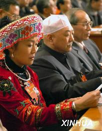 中國(guó)人民政治協(xié)商會(huì)議第10期全國(guó)委員會(huì)第3回會(huì)議が3日午後3時(shí)、北京の人民大會(huì)堂で開幕した。寫真は報(bào)告を真剣に聴取する全國(guó)政協(xié)の委員たち。