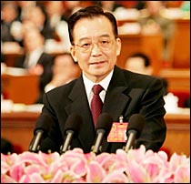 第10期全國(guó)人民代表大會(huì)(全人代)第3回會(huì)議が5日午前9時(shí)、北京?人民大會(huì)堂で開(kāi)幕した。全人代常務(wù)委員會(huì)の呉邦國(guó)委員長(zhǎng)が議長(zhǎng)を務(wù)め、國(guó)務(wù)院の溫家寶総理が國(guó)務(wù)院を代表して政府活動(dòng)報(bào)告を行った。