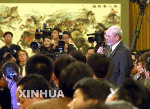 第10期全國(guó)人民代表大會(huì)第3回會(huì)議の記者會(huì)見(jiàn)が6日午前10時(shí)に開(kāi)かれ、李肇星外交部長(zhǎng)が國(guó)際情勢(shì)、中國(guó)の外交政策などについて、國(guó)內(nèi)外の記者の質(zhì)問(wèn)に答えた。寫真は取材に真剣に取り込む記者たち。