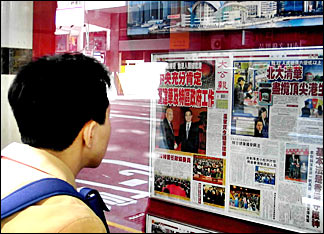 寫真:香港紙「大公報(bào)」を読む香港市民
